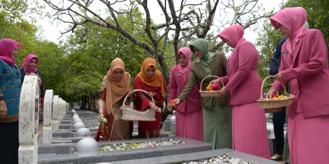 Banda Aceh – Memperingati Hari Pahlawan tahun 2018, Wakil Ketua PKK dan Dekranasda Aceh Dyah Erti Idawati, menziarahi Taman Makam Pahlawan di Peuniti Banda Aceh, Sabtu, 10/11/2018. Di sana, Dyah melakukan prosesi tabur bunga.