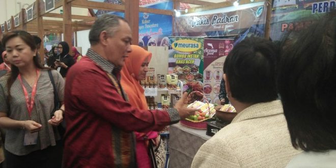 Tangerang – Provinsi Aceh ikut ambil peran dalam Pameran Trade Expo dan Pangan Nusa 2018 yang diselenggarakan di ICE BSD Tangerang Banten. Dalam kegiatan itu, Aceh yang diwakili oleh Dinas Perindustrian dan Perdagangan Aceh itu, memamerkan beberapa produk unggulan lokal.