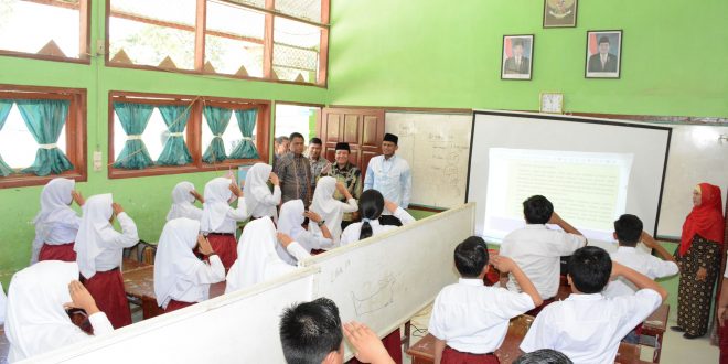 Rektor UIN Ar Raniry Banda Aceh, Prof. Dr. H. Warul Walidin, didampingi Bupati Aceh Timur H. Hasballah HM.Thaib, SH, bersama sejumlah pejabat lainnya meninjau proses pembelajaran berbasis dayah di SMPN 1 Idi, Kamis (27/9/2018).
