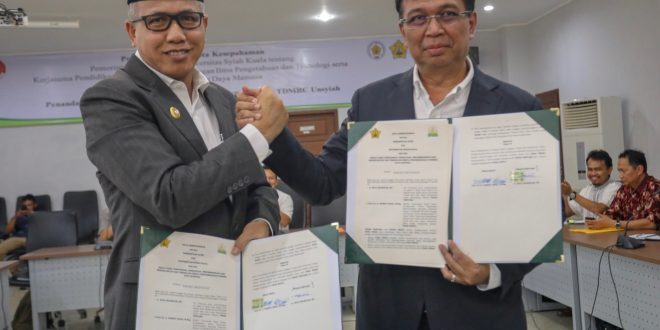 Banda Aceh – Pemerintah Aceh melalui Badan Penanggulangan Bencana Aceh, menandatangani kerjasama bidang pendidikan, penilitian, pengembangan ilmu pengetahuan dan teknologi serta pengembangan Sumber Daya Manusia dengan Universitas Syiah Kuala, di kampus setempat, Jumat 29/03/2019.