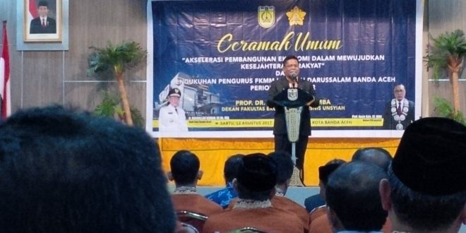 Ia menambahkan, acara pengukuhan FKMM juga kita rangkai dengan ceramah umum bertajuk “Akselerasi Pembangunan Ekonomi dalam Mewujudkan Kesejahteraan Rakyat” yang disampaikan oleh Dekan Fakultas Ekonomi dan Bisnis Unsyiah Nasir Azis. “Ceramah umum ini merupakan wujud kepedulian kita semua, dan semoga dapat membuka wawasan kita dalam percepatan pembangunan ekonomi Aceh serta dapat kita implementasikan di tengah-tengah masyarakat,” katanya.