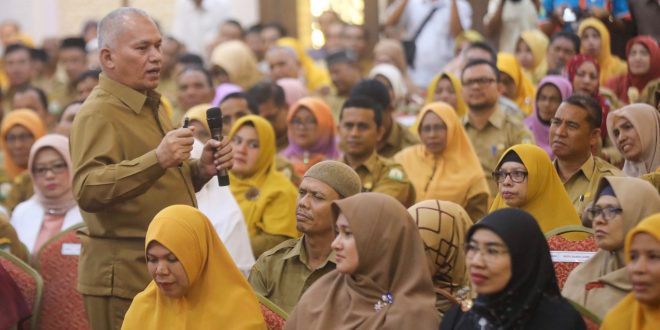 Banda Aceh – Sejumlah penerima SK Kenaikan pangkat mengaku bersemangat, setelah menerima arahan dan bimbingan dari Sekretaris Daerah Aceh Taqwallah, pada acara penyerahan SK Kenaikan Pangkat dan Pensiun ASN se-Aceh, di Aula Dinas Pendidikan Aceh, Selasa (24/9/2019).