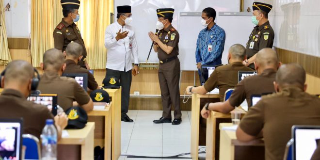 BANDA ACEH – Asisten Administrasi Umum Sekretaris Daerah Aceh, Iskandar AP, mendampingi Kepala Badan Diklat Kejaksaan Republik Indonesia Tony Tribagus Spontana, meninjau langsung pelaksanaan Pendidikan dan Pelatihan Pembentukan Jaksa (PPPJ) angkatan 73 Tahun 2021, yang dipusatkan di Badan Pengembangan Sumber Daya Manusia (BPSDM) Aceh. Jumat (17/9/2021).