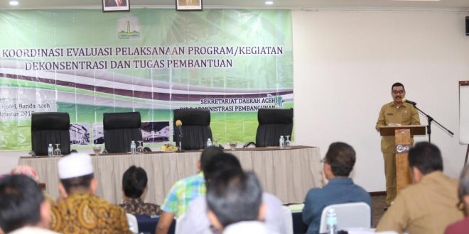 Penegasan tersebut disampaikan oleh Asisten Administrasi Umum Sekda Aceh, Kamaruddin Andalah, saat membacakan sambutan tertulis Gubernur Aceh, Drh H Irwandi Yusuf M Sc, pada pembukaan Rapat Koordinasi Evaluasi Pelaksanaan Program/Kegiatan Dekonsentrasi dan Tugas Pembantuan, yang dipusatkan di Hotel Oasis, Selasa (22/8/2017).