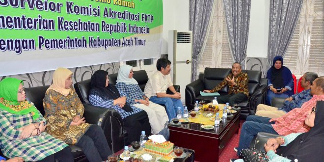 IDI – Asisten Administrasi Umum Setdakab Aceh Timur, Safrizal, SH, M.AP, menyambut baik kedatangan Tim Suveior Komisi Akreditasi FKTP dari Kementerian Kesehatan (Kemenkes) RI, Minggu (15/10/2017) malam.