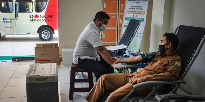 BANDA ACEH–Aparatur Sipil Negara (ASN) Pemerintah Aceh di Dinas Pangan Aceh sukses mendonorkan darah sebanyak 29 kantong, Selasa, 5/10/2021. Aksi kemanusiaan donor darah ASN Pemerintah Aceh tahun 2021 ini telah memasuki tahap keempat.