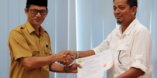 Banda Aceh – Pemerintah Kota Banda Aceh menerima penghargaan Penilaian Kinerja Pemerintah Daerah Bidang Pekerjaan Umum (PKPD-PU) tahun 2017 dari Kementerian Pekerjaan Umum (PU) dan Perumahan Rakyat Republik Indonesia, Selasa (16/05/2017). Penghargaan ini diberikan langsung oleh Kepala Urusan BMN Sub Bagian Tata Usaha Direktorat Bina Operasi dan Pemeliharaan Ditjen SDA Kementerian PUPR RI, Ifiyanto yang diterima oleh Asisten Administrasi Umum Setdakota Banda Aceh, M Nurdin SSos, di Balai Besar PU Pengairan Aceh.