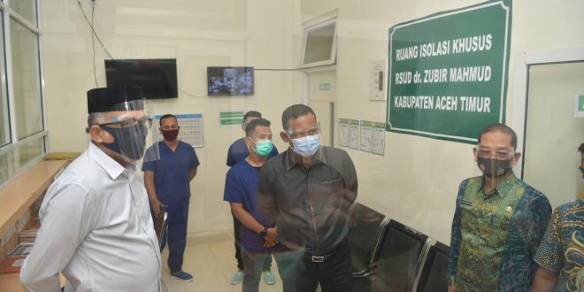 Plt. Gubernur Aceh, Nova Iriansyah didampingi Bupati Aceh Timur, H. Hasballah M. Thaib dan Direktur RSUD dr. Zubir Mahmud meninjau ruang isolasi pasien Covid-19 di RSUD dr. Zubir Mahmud, Kabupaten Aceh Timur, Sabtu,(12/9/2020).