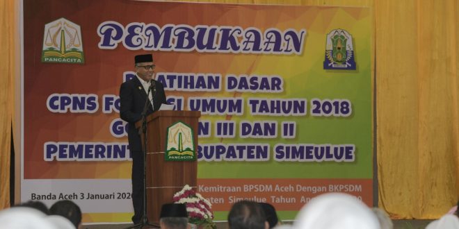 “Kami harapkan saudara bisa menjadi PNS yang profesional dan tauladan dalam melaksanakan tugas yang diembankan kepada saudara,” kata Nova saat membuka Pelatihan Dasar CPNS Formasi Umum Tahun 2018 Golongan III dan II Kabupaten Simeulue, di Aula BPSDM Pemerintah Aceh, Jumat 3/1.