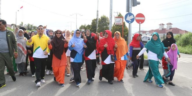 REDELONG : Bupati Kabupaten Bener Meriah Ahmadi, SE melepas para peserta jalan sehat dalam rangka peringatan Hari Kesehatan Nasional Tahun 2017 di Pendopo Bupati, Simpang Tiga Redelong, Jum’at (17/11)