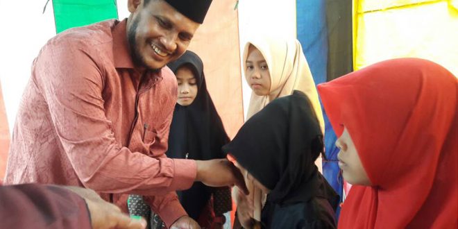 DI CUT — Bupati Aceh Timur, H. Hasballah HM.Thaib atau Rocky bersama unsur Komite Peralihan Aceh (KPA) dan Partai Aceh (PA) Kecamatan Darul Aman, menyalurkan puluhan paket lebaran terhadap puluhan anak-anak yatim piatu, penyandang disabilitas dan fakir miskin di Desa Seuneubok Tuha Idi Cut, Kecamatan Darul Aman, Aceh Timur, Senin (19/6/2017).
