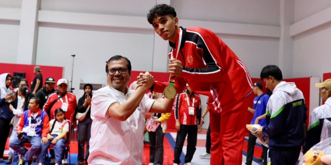 BANDA ACEH – Plh Sekretaris Daerah Aceh Azwardi, mengucapkan selamat dan mengapresiasi perjuangan Tim Anggar Aceh nomor Floret Beregu Putra yang berhasil menundukkan Tim Anggar Provinsi Jawa Barat, pada final yang digelar di Gelanggang Olahraga Anggar yang berada di komplek Stadion Harapan Bangsa Lhong Raya, Minggu (15/9/2024).