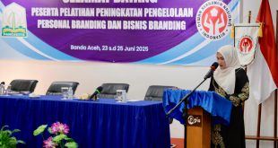 Banda Aceh – Ketua Dewan Kerajinan Nasional Daerah (Dekranasda) Aceh, Marlina Muzakir, secara resmi membuka kegiatan Pelatihan Peningkatan Pengelolaan Personal Branding dan Bisnis Branding bagi pelaku Usaha Mikro, Kecil, dan Menengah (UMKM) di Hotel Oasis, Banda Aceh, Senin, 23 Juni 2025. Pelatihan yang digelar oleh Dekranasda Aceh ini diikuti oleh pelaku UMKM dari berbagai kabupaten/kota di Aceh, dan akan berlangsung …