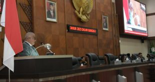 BANDA ACEH – Sekretaris Daerah (Sekda) Aceh, Bustami Hamzah atas nama Penjabat Gubernur Aceh, menyampaikan Laporan Keterangan Pertanggungjawaban (LKPJ) Gubernur Aceh Tahun Anggaran 2022, dalam Sidang Paripurna Dewan Perwakilan Rakyat Aceh (DPR Aceh), Rabu 5 April 2023 di Ruang Sidang Utama Gedung DPR Aceh. Paripurna itu dipimpin langsung Ketua DPR Aceh, Saiful Bahri, dan diikuti para anggota Dewan, Asisten Sekda, …