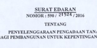 Read More »SURAT EDARAN TENTANG PENYELENGGARAAN PENGADAAN TANAH BAGI PEMBANGUNAN UNTUK KEPENTINGAN UMUM