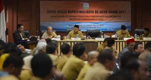 Humas Aceh | 21 Nov 2017 Banda Aceh – Gubernur Aceh Irwandi Yusuf didampingi Wakil Gubernur Nova Iriansyah memimpin Rapat Kerja Bupati Walikota Se Aceh Tahun 2017 di Gedung Serba Guna, Kantor Gubernur Aceh, Selasa 21 November 2017.