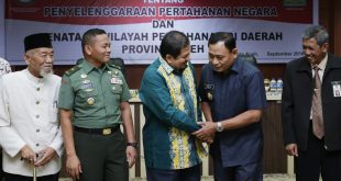 Humas Aceh | 22 Sep 2016 Banda Aceh – Gubernur Aceh, dr. H. Zaini Abdullah mengatakan peran masyarakat sangat penting dalam kegiatan bela negara guna mempertahankan kedaulatan bangsa. Masyarakat Aceh dituntut terlibat menjaga keamanan negara dari ancaman luar mengingat letak geografis Aceh yang dekat dengan dunia internasional.
