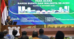 BANDA ACEH – Sebanyak delapan (8) isu utama dibahas dalam Rapat Koordinasi (Rakor) Penjabat (Pj) Gubernur Aceh, dengan para Bupati dan Wali Kota se Aceh, di Anjong Mon Mata, Komplek Meuligoe Gubernur Aceh, Kamis 13 Oktober 2022. Selain Gubernur dan Bupati, ikut juga para Sekda dan Kepala Bappeda Kabupaten/Kota se Aceh, dalam rakor tersebut. Kepala Bappeda Aceh, T. Ahmad Dadek …