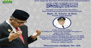 Banda Aceh – Pelaksana Tugas Gubernur Aceh, Ir. Nova Iriansyah, MT menyampaikan duka cita atas meninggalnya, Bupati Aceh Selatan H. Azwir S.Sos., yang meninggal dunia menjelang pukul 12 siang tadi di National University Hospital Singapura. “Atas nama pribadi, keluarga, Pemerintah, dan seluruh rakyat Aceh, kami menyampaikan duka cita atas meninggalnya Pak Azwir,” kata Nova Iriansyah, Pelaksana Tugas Gubernur Aceh, Senin …
