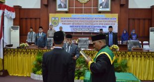 Humas Aceh | 6 Februari 2017 Banda Aceh – Arida Syahputra secara resmi diangkat dan disumpah sebagai anggota DPRK Banda Aceh sisa masa jabatan 2014-2019. Ia menggantikan posisi Farid Nyak Umar (FNU) yang maju dalam Pilkada Banda Aceh 2017 sebagai wakil wali kota.