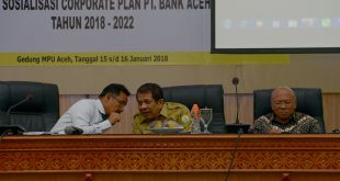 Humas Aceh | 15 Januari 2018 Banda Aceh – Sekretaris Daerah Aceh, Drs Dermawan, MM menghimbau Bank Aceh agar lebih fokus pada pembiayaan sektor produktif untuk mendukung pertumbuhan ekonomi di Aceh. Hal tersebut disampaikan Dermawan saat membuka Sosialisasi Corporate Plan PT. Bank Aceh tahun 2018-2022 di Aula Majelis Permusyawaran Ulama Aceh, Senin (15/01/2018).