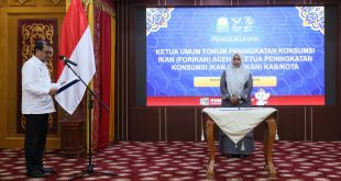 BANDA ACEH— Pj Sekda Aceh Azwardi, mengukuhkan Pj Ketua Tim Penggerak PKK Aceh Mellani Subarni sebagai Ketua Umum Forum Peningkatan Konsumsi Ikan (Forikan) Aceh, di Meuligoe Gubernur Aceh, Rabu, (7/8/2024). Pada kesempatan yang sama, usai dikukuhkan sebagai Ketua Forikan Aceh, Mellani Subarni juga mengukuhkan secara serentak 23 Ketua Forikan Kabupaten/Kota seluruh Aceh. Dirjen Penguatan Daya Saing Produk Kelautan dan Perikanan …