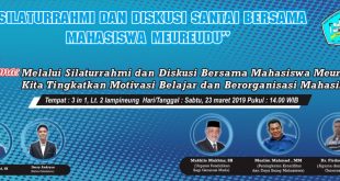 Humas Aceh | 22 Maret 2019 Ikatan Pelajar Mahasiswa Meureudu (IPEMADU) adakan “Silaturrahmi dan Diskusi Santai” bersama mahasiswa dan tokoh Meureudu, yang akan dilksanakan Sabtu, 23 Maret di 3 in 1 Coffee Lampinung Banda Aceh.