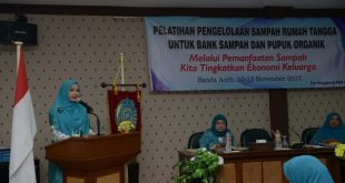 Humas Aceh | 12 Nov 2017 Banda Aceh – Ketua TP-PKK Aceh, Darwati A Gani mengajak masyarakat Aceh untuk mengelola sampah rumah tangga sehingga bisa dimanfaatkan baik untuk dijadikan sebagai pupuk maupun kerajinan tangan sehingga memiliki nilai jual.
