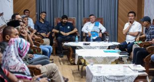 LHOKSEUMAWE–Sekretaris Daerah Aceh, Bustami, mendampingi Menteri Koordinator Bidang Politik, Hukum dan Keamanan (Menko Polhukam) RI, Mohammad Mahfud MD, dalam pertemuan bersama ulama dan tokoh masyarakat Pasee, di Gedung MBP Arun, Minggu, (11/6/2023) malam.