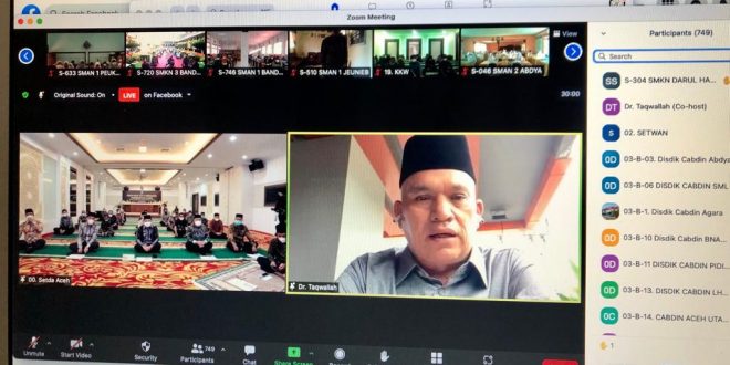 Zikir pagi yang telah menjadi rutinitas pagi para ASN Pemerintah Aceh dan para guru SMA/SMK se Aceh itu kali ini terpaksa diikuti Taqwallah dari lokasi penyelenggaraan PON Papua 2021. Taqwallah berada di sana mewakili Gubernur Aceh untuk menghadiri penutupan PON Papua.