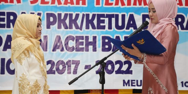 Hal tersebut disampaikan Darwati seusai melantik Hj. Rosma Jasmin sebagai Ketua Dekranasda dan TP-PKK Aceh Barat periode 2017-2022 di aula Kantor Bupati Aceh Barat, Selasa (10/10).