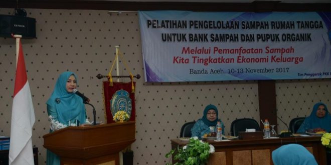 Banda Aceh – Ketua TP-PKK Aceh, Darwati A Gani mengajak masyarakat Aceh untuk mengelola sampah rumah tangga sehingga bisa dimanfaatkan baik untuk dijadikan sebagai pupuk maupun kerajinan tangan sehingga memiliki nilai jual.