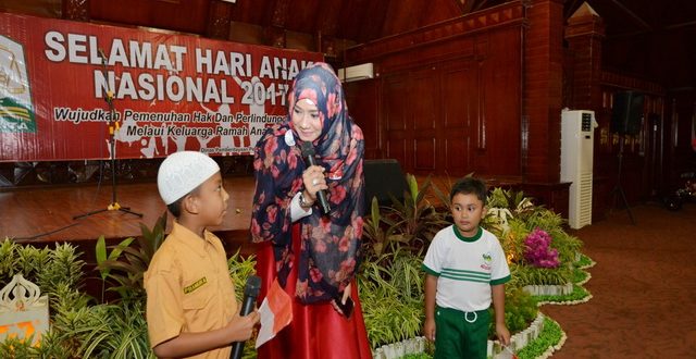 Banda Aceh – Istri Gubernur Aceh, Darwati A Gani menghadiri acara Peringatan Hari Anak Nasional tahun 2017 di Anjong Mon Mata, Sabtu (29/7/2017).
