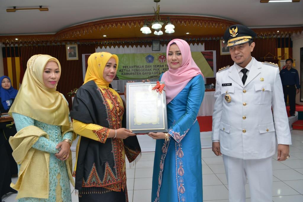 Blangkejeren – Ketua Pemberdayaan Kesejahteraan Keluarga (PKK) dan Dewan Kerajinan Nasional Daerah (Dekrasda) Aceh, Darwati A. Gani, melantik Hartati sebagai Ketua Tim Penggerak PKK dan Dekranasda Gayo Lues, di Komplek Pendopo Bupati Gayo Lues, Selasa 3 Oktober 2017.