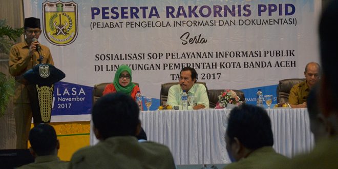 Hal tersebut diungkapkan Walikota Banda Aceh H. Aminullah Usman, SE. Ak MM dalam sambutannya yang dibacakan Asisten Administrasi Umum M. Nurdin, S.Sos saat membuka Rapat Koordinasi (Rakornis) Pejabat Pengelola Informasi dan Dokumentasi (PPID) kota Banda Aceh, di Aula Balaikota. Selasa (7/11/2017).