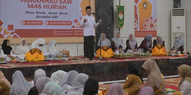 Plh. Ketua DWP Aceh, Nurmaziah, mengatakan peringatan Maulid Nabi Muhammad SAW yang digelar pihaknya itu mengambil tema: “Peran wanita dalam Islam menurut ajaran Rasulullah SAW”.