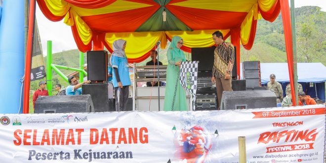 Takengon – Wakil Ketua PKK Aceh, Dyah Erti Idawati, membuka Takengon Rafting Festival 2018, yang dilangsungkan di Sungai Peusangan Lukop Badak, Sabtu 15 September 2018. Arung Jeram yang masuk dalam agenda GAMIFest itu diharapkan bisa menjadi destinasi wisata baru yang membawa dampak perekonomian bagi masyarakat setempat.