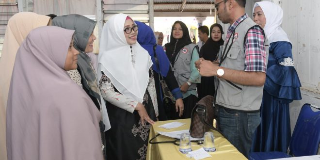 Wakil Ketua TP PKK Aceh, Dyah Erti Idawati, meninjau kegiatan Bakti Sosial Pemeriksaan Kesehatan oleh Pemerintah Aceh, di Dayah Darussalam Alwalyyah Blang Poroh Labuhan Haji Aceh Selatan, (15/2/2020).