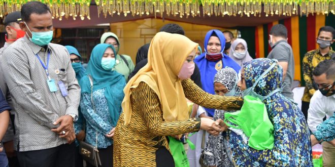 Wakil Ketua Gugus Tugas Percepatan Penanganan Covid-19 Aceh, Dr. Ir. Dyah Erti Idawati, MT, bersama Bupati Aceh Timur, Hasballah Bin H.M Thaib, SH, didampingi Camat Rantau Selamat, M. Suryasyah, S.STP, M.AP, menyerahkan Bantuan Sosial sekaligus mensosialisasikan pencegahan wabah Covid-19 di Kantor Keuchik Gampong Rantau Panjang Kec. Rantau Selamat, Kab. Aceh Timur, Sabtu, (6/6/2020).