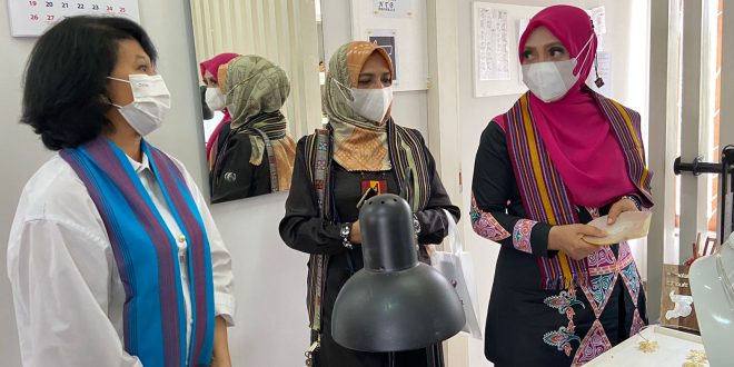 LOMBOK – Ketua Dewan Kerajinan Nasional Daerah (Dekranasda) Aceh Dyah Erti Idawati, mengunjungi Galeri Mutiara Riana Meilia Lombok NTB Pearl, di Kota Mataram, Provinsi Nusa Tenggara Barat (NTB), Sabtu (4/12/2021).