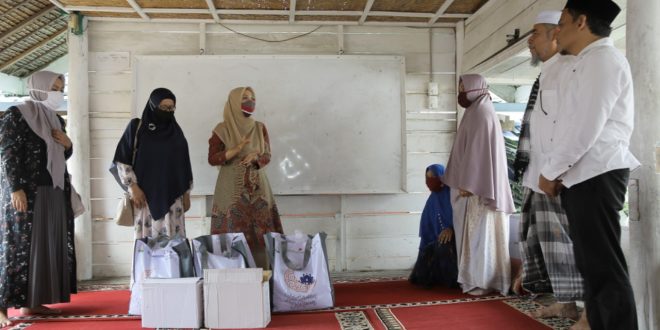 Usai silaturahmi, Dyah kemudian menyerahkan sedikit bantuan kepada pimpinan dan pengajar Dayah Darul Muta’allimin. []