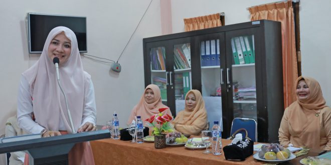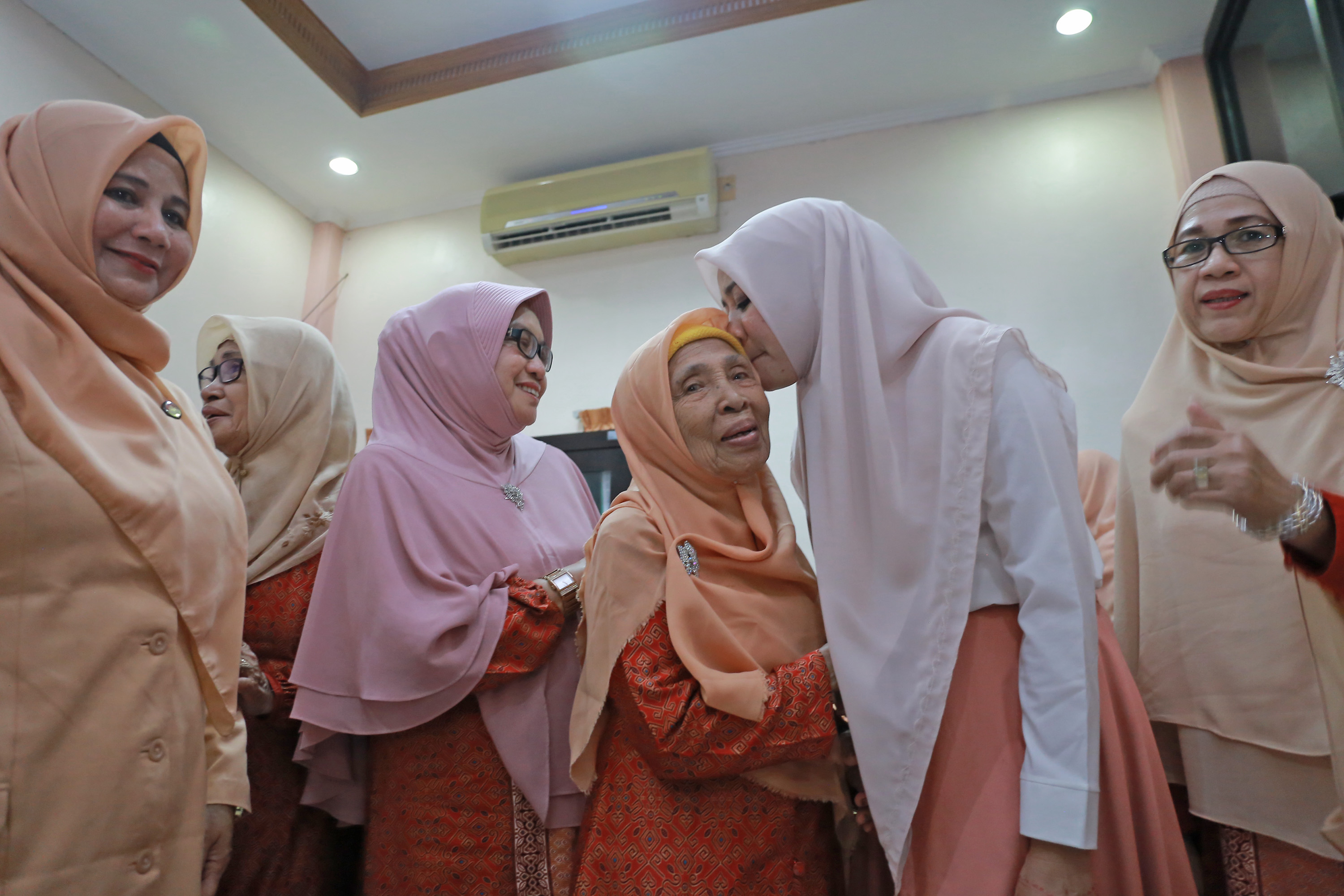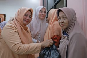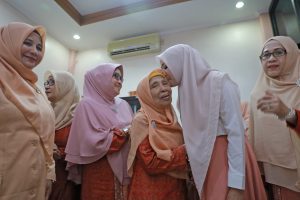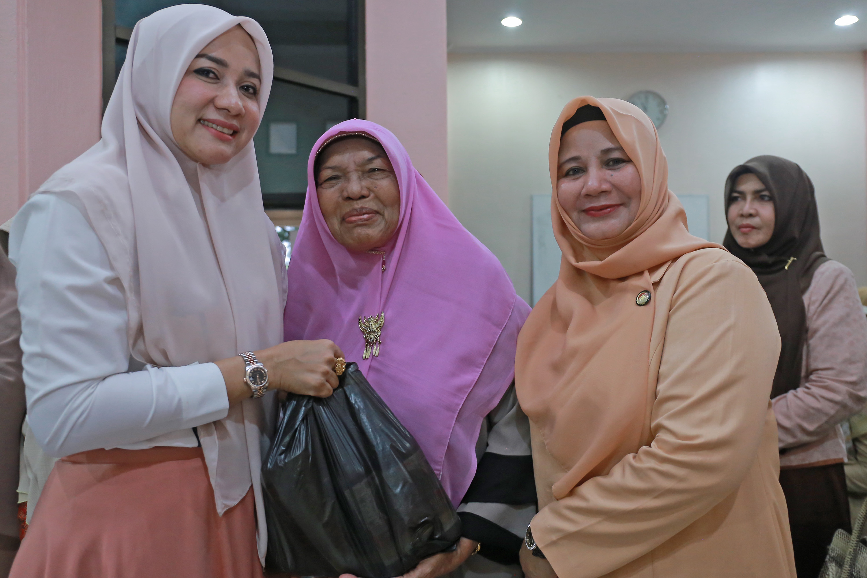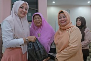 Ketua PKK Aceh, Aceh Darwati A. Gani menyerahkan Bantuan Sembako Kepada Ibu – ibu Pensiunan Pegawai Sekretariat Daerah Aceh di Gedung Persatuan Darma Wanita di Komplek Kantor Gubernur, Banda Aceh, Senin(14/18)