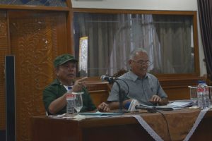 Gubernur Aceh, Irwandi Yusuf didampingi Kepala P2K, Dr. Taqwalah menjelaskan hasil peninjauan proyek yang didanai APBA dan Otsus di beberapa Kabupaten/Kota saat Konferensi Pers di Lanud SIM, Banda Aceh, 30/10/2017.