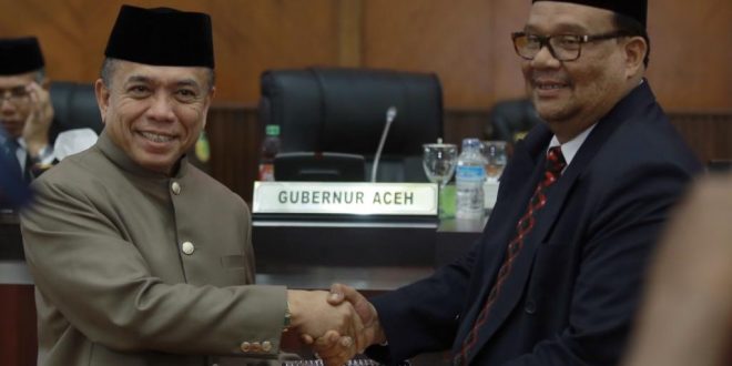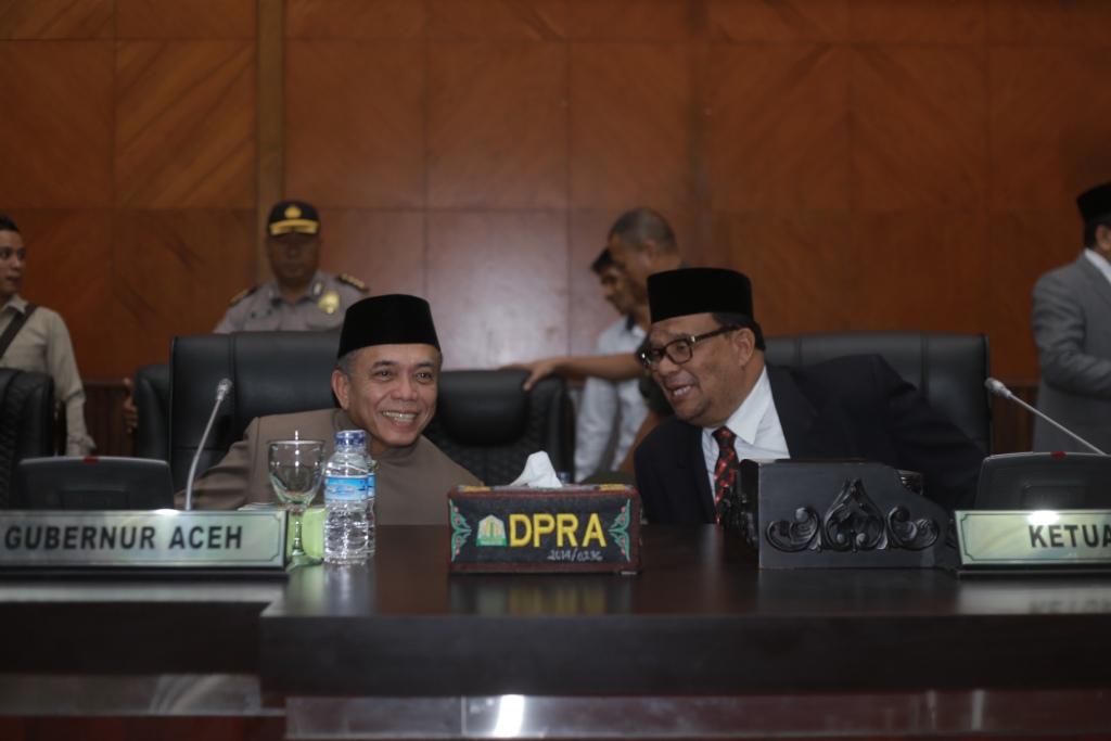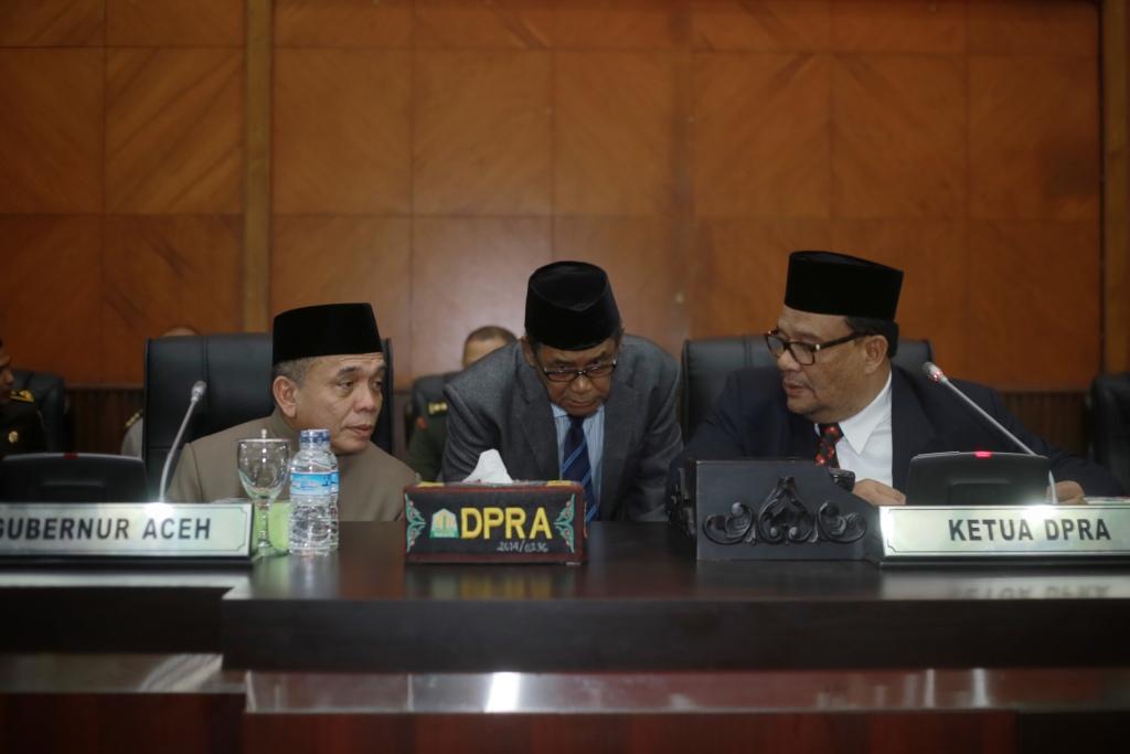 Gubernur Aceh, Irwandi Yusuf menyampaikan LKPJ Tahun 2017 dihadapan Anggota DPRA pada sidang paripurna, Banda Aceh, Rabu (25/18).