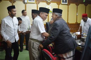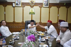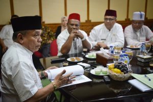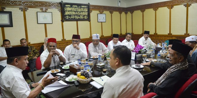 Gubernur Aceh, Irwandi Yusuf menerima Bupati Pidie, Roni Ahmad (Abuchik) dan Wakil Bupati bersama Ulama membahas penyelenggaraan MTQ l ke XXXIV 2019 se-Aceh di Kabupaten Pidie, Ruang rapat Gubernur Aceh, Jumat, 23/02/2018.
