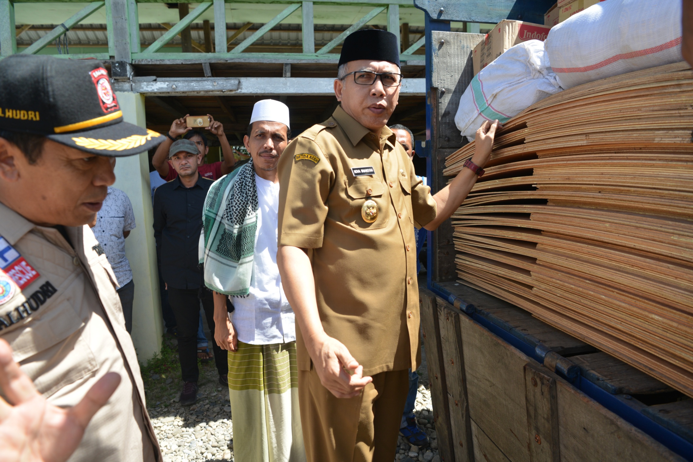 Wakil Gubernur Aceh, Nova Iriansyah meninjau dan menyerahkan bantuan tanggap darurat ke Dayah Nur Yaqdhah, Gampong Kuta Trieng, Aceh Selatan, Selasa, 5/6/2018.