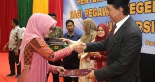 Banda Aceh – Wakil Ketua Tim Penggerak PKK Aceh, Dyah Erti Idawati, menerima tanda penghormatan Satyalancana Karya Satya, di Gedung AAC Dayan Dawood, Banda Aceh, Jumat, (4/10). Penghargaan itu diterima Dyah sebagai salah satu Aparatur Sipil Negara (ASN) di lingkungan Universitas Syiah Kuala (Unsyiah) yang telah mengabdi selama 20 tahun. Selain menjalani kesibukannya saat ini sebagai pimpinan TP PKK Aceh, istri …