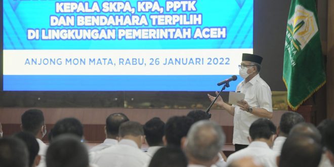 Hal tersebut disampaikan oleh Gubernur Aceh Nova Iriansyah, usai mendengar dan menerima Pakta Integritas dari para Kepala Satuan Kerja Perangkat Aceh, Pengguna Anggaran, Kuasa Pengguna Anggaran, Pejabat Pelaksana Teknis Kegiatan dan Bendahara seluruh Satuan Kerja Perangkat Aceh, di Anjong Mon Mata Komplek Meuligoe Gubernur Aceh, Rabu (26/1/2022).