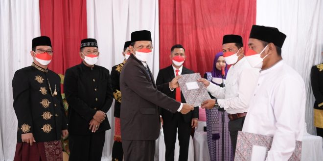 BANDA ACEH – Gubernur Aceh yang diwakili Asisten Pemerintahan dan Keistimewaan Sekda Aceh M Jafar, Selasa (17/08/2021), menyerahkan Surat Keputusan Remisi Umum (RU) secara simbolik kepada Warga Binaan Pemasyarakatan (WBP) di Lembaga Pemasyarakatan Kelas IIA Banda Aceh, dalam rangka Hari Ulang Tahun (HUT) ke-76 Kemerdekaan Republik Indonesia (RI).