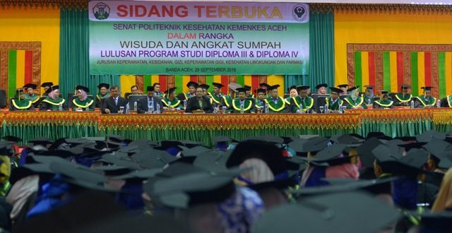 Hal tersebut disampaikan Gubernur Aceh dalam sambutannya yang dibacakan Asisten Administrasi Umum, Syahrul, SE., M.Si saat menghadiri Sidang Terbuka Senat Politeknik Kesehatan Kemenkes Aceh dalam rangka wisuda dan angkat sumpah lulusan program studi diploma III dan Diploma IV di Gedung AAC Dayan Dawood, Kamis (29/9).